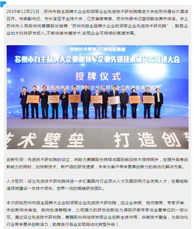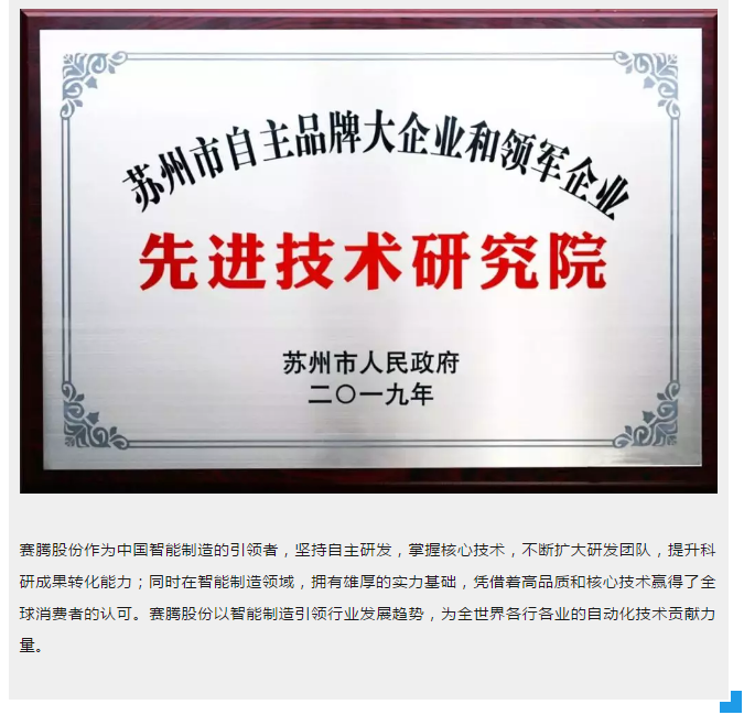 九游体育(中国)股份获批苏州市自主品牌大企业和领军企业先进技术研究院