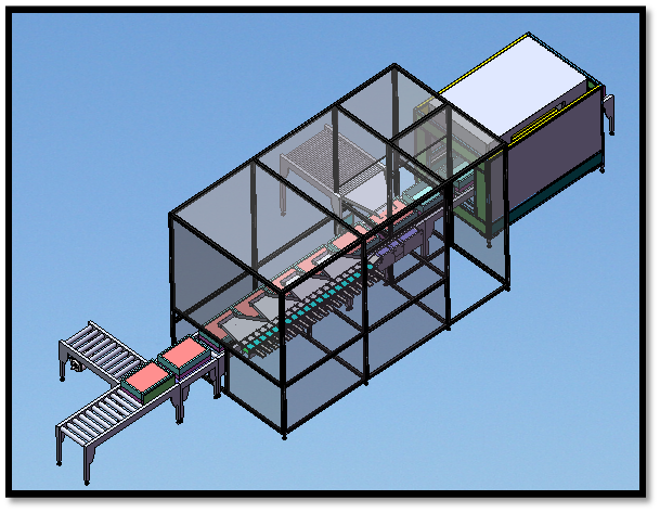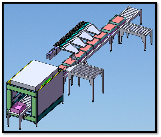 包装线直接连接冷冻设备,冷冻食品包装工序包括自动套袋、定量称重、 打包等;该包装线可广泛应用于冷冻食品包装。